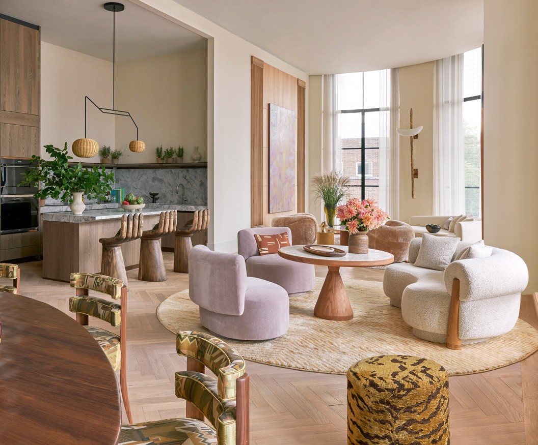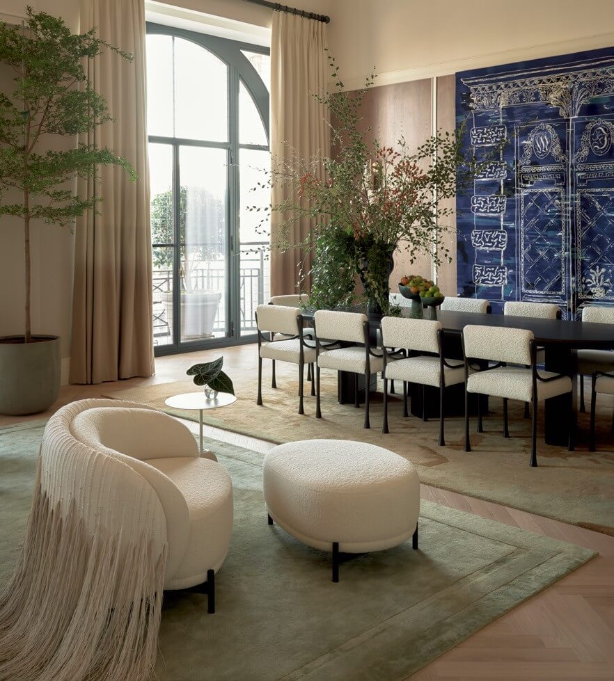 Kelly’s studio managed the project remotely from the US, travelling over when needed. This post-Covid way of working may have its drawbacks, but unlike her New York projects, where she can ‘stroll over, muse and look out the window’, she relishes how it forces her to keenly focus on what needs to be done. A taste of her home city infuses the airy interiors. ‘I don’t think I can outrun my New York point of view!’ she laughs. She loves the open-plan kitchen and living space at the heart of the apartment, where ‘you really get a sense of the scale’. Rather than a separate living room ‘where nobody goes and it feels like a museum’, here there are plenty of spots to sit with a laptop or read a newspaper. A formal dining area was a must, even if it’s seldom used, as ‘it feels like such a staple of a home’. Conjoining these areas ‘represents a modern way of living so perfectly, like you’re really in the mix’. kellybehun.com