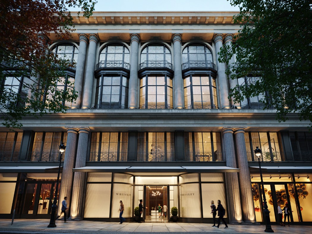 Starting out as a draper’s on Westbourne Grove established by William Whiteley in 1863, it soon outgrew that location and in 1911 moved to a purpose-built store on Queens Road –now Queensway – in Bayswater. In its heyday, the emporium was called ‘the most beautiful store in the United Kingdom’. It changed hands several times (Harry Gordon Selfridge took it over at one point) and closed in 1981, reopening under new ownership as a shopping centre in 1989. Whiteley’s frontage started to look a little shabbier as its fortunes declined. The site was purchased in 2013 by Meyer Bergman (now known as MARK) and closed for redevelopment in 2018. The project is being led by development manager Finchatton, with MARK and CC Land as joint venture investment partners, transforming this former white elephant into something altogether new: the Whiteley.