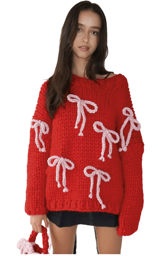 How did you find your team of knitters? Facebook! We got hundreds of applications from people who wanted to be part of the team. It’s crazy how much talent there is here. There are 20 knitters, and each week they produce between three and five knitwear pieces, and then the next week my mum collects them and gives them the supplies for the next project.